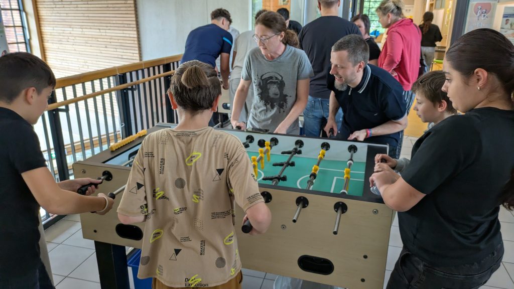 Ein weiteres Highlight war das spannende Kickertunier „Schüler gegen Lehrer“, bei dem sich das Team „Schulleitung“ im packenden Finale gegen das Team „Deutschklasse 7-9“ als stolze Sieger durchsetzen konnte.